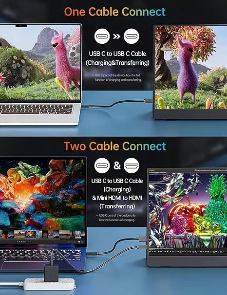 - Look no further!: Get this portable monitor right Now, complete with magnetic cover, USB-C to USB-C cable, Mini HDMI to HDMI cable.